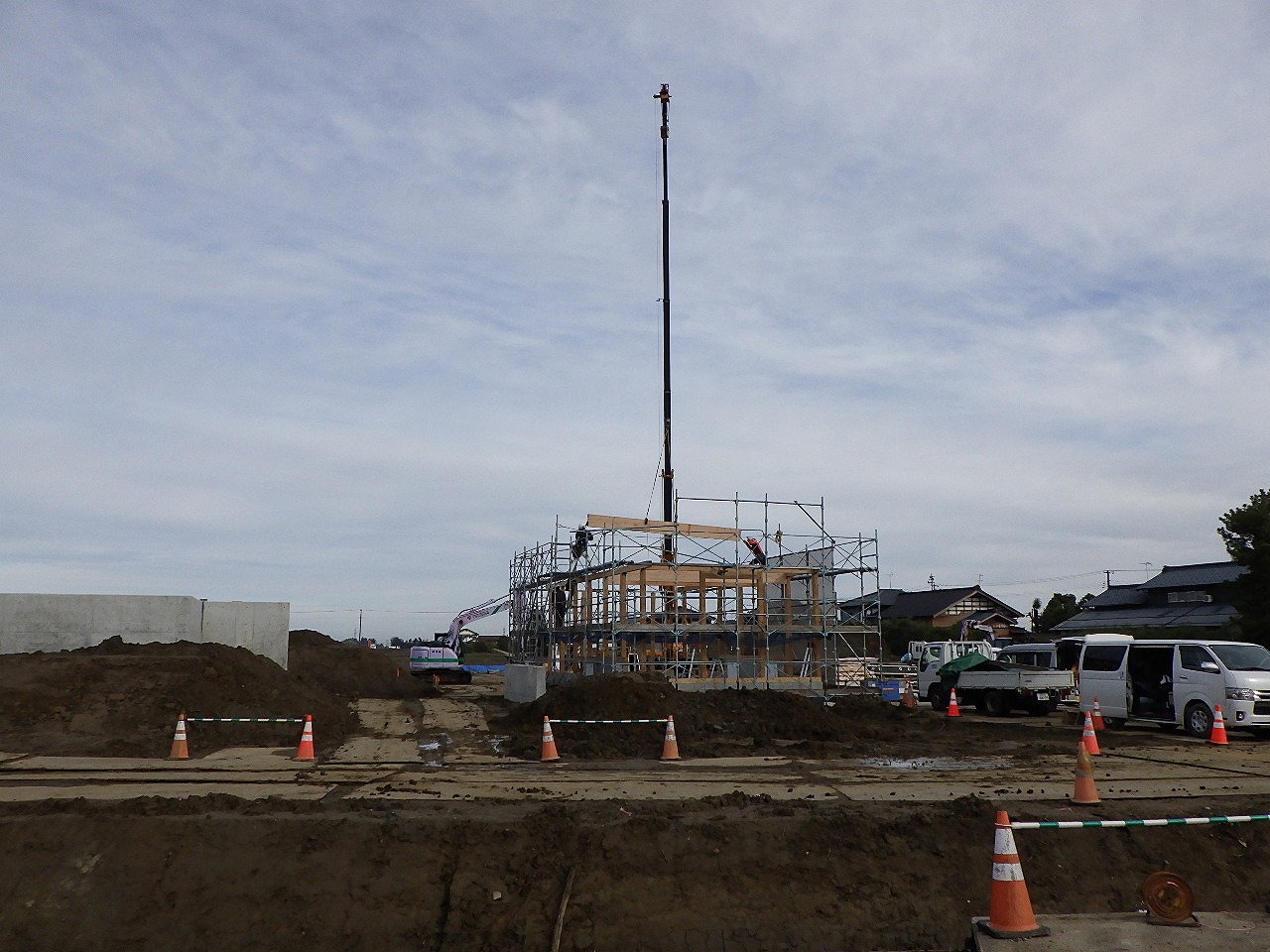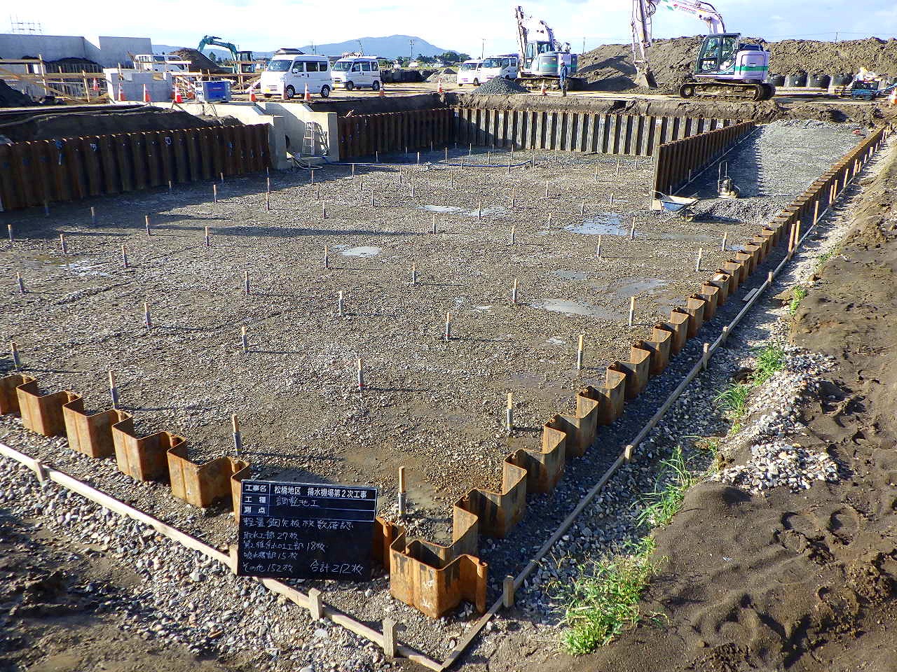 そして3枚目の写真は建屋の基礎杭を打っています。調整池が完成したら建屋工事に着手します!