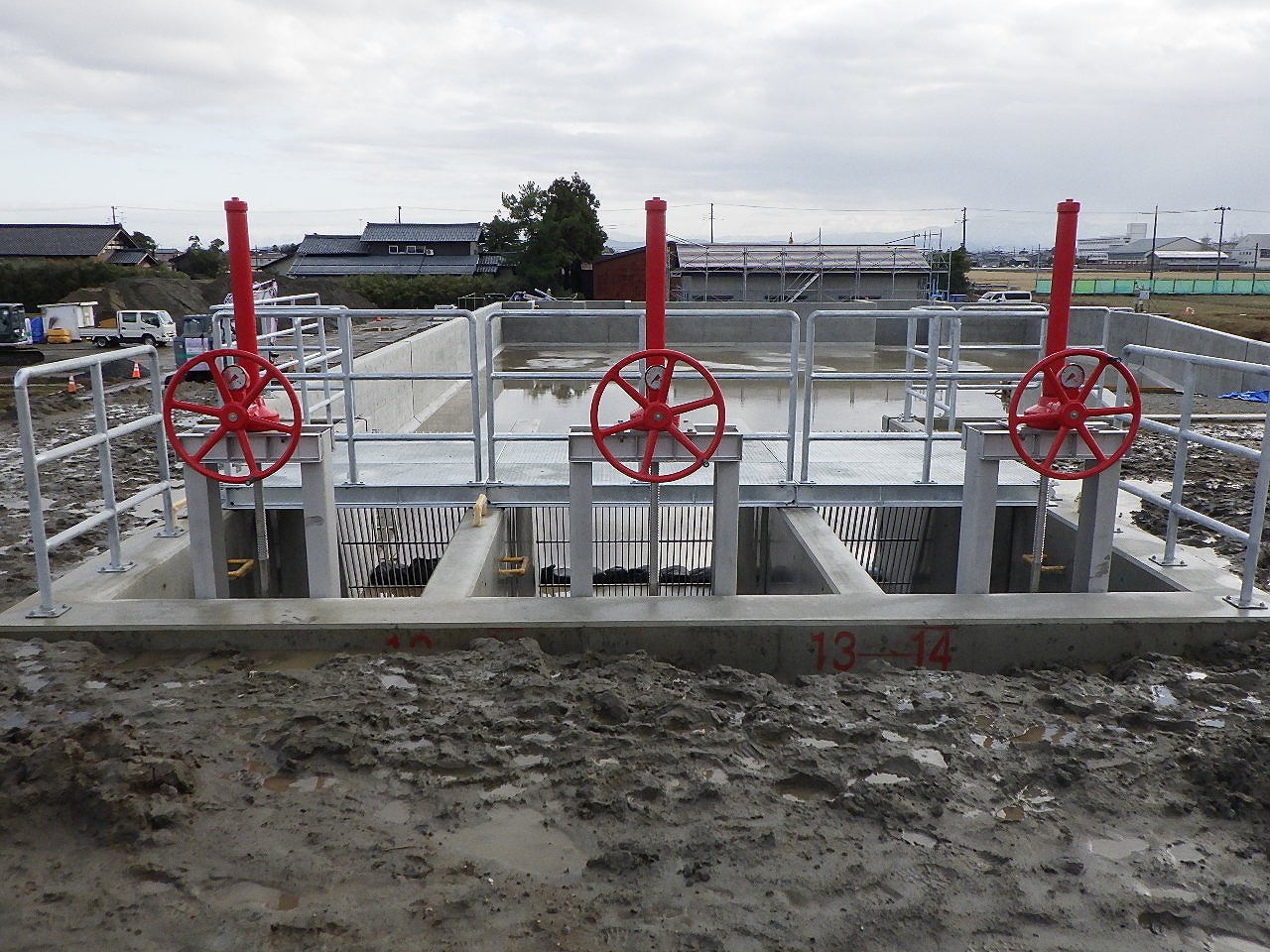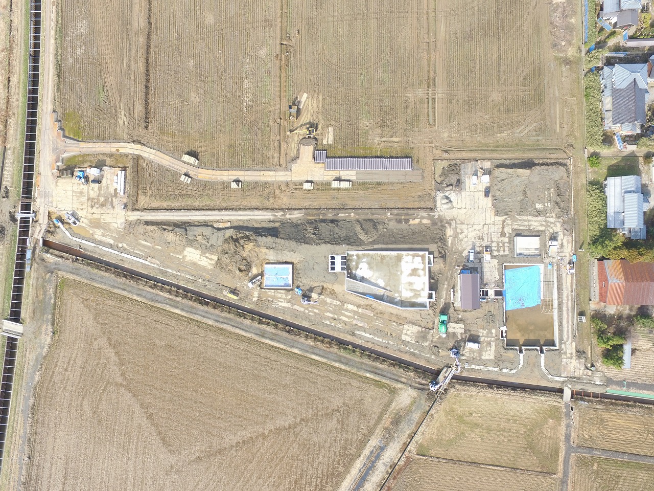 調整池の方の施工が進み、吸水槽の設置をしている様子です。