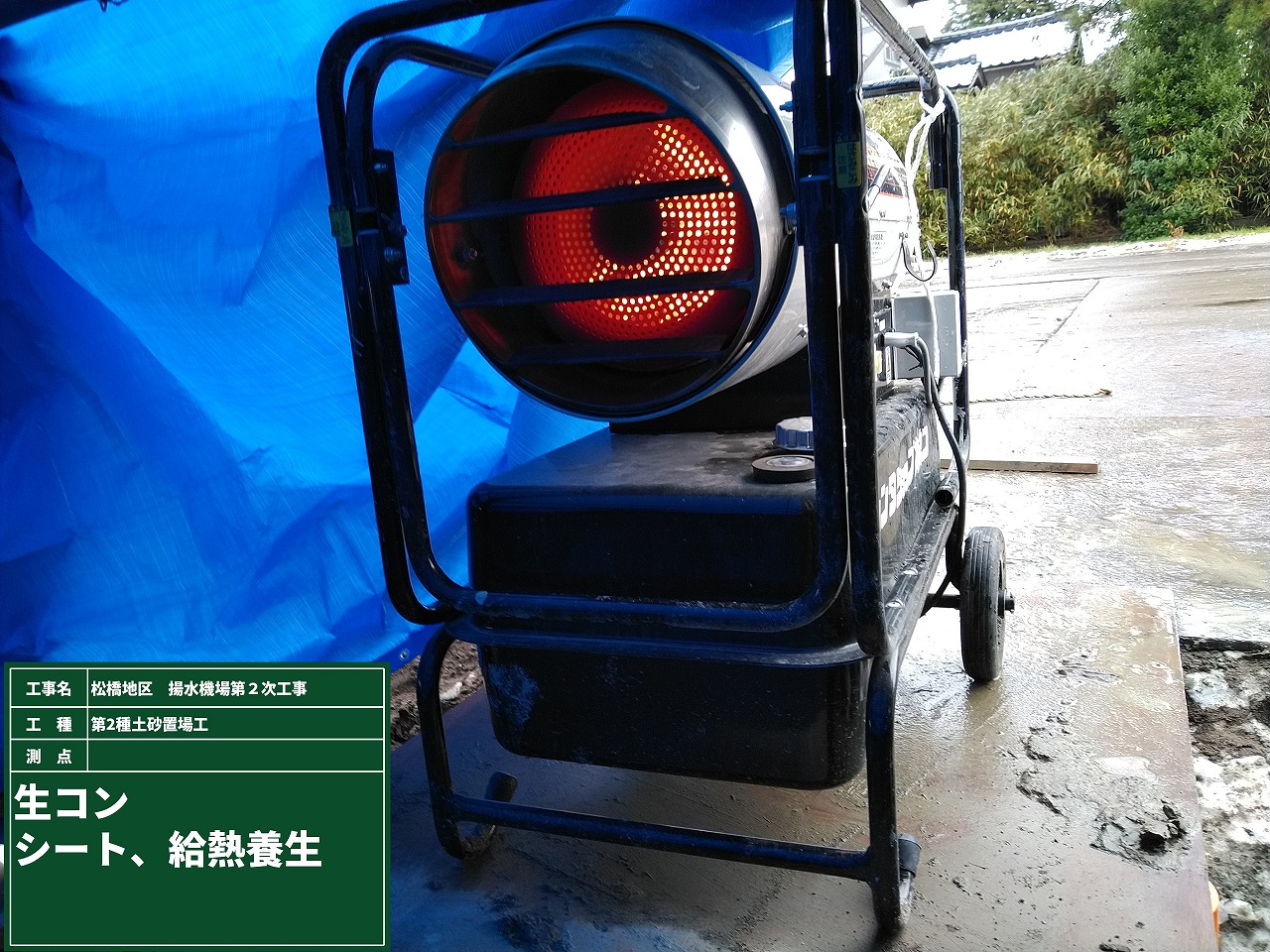 そして1月は外気温が5℃以下を下回るときが多いので給熱養生も同時に行います。
