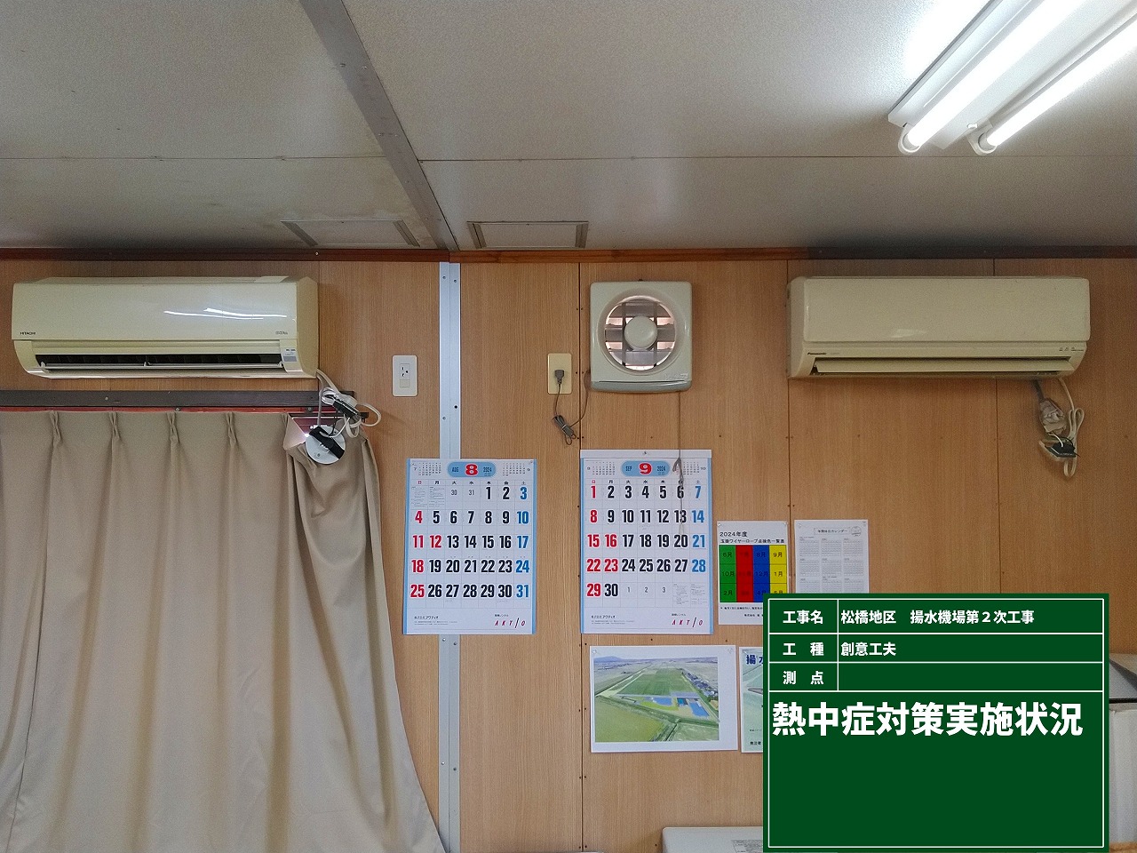 作業をしている皆さんが少しでも快適に仕事をして貰えるように、現場事務所にエアコンを設置しました。
