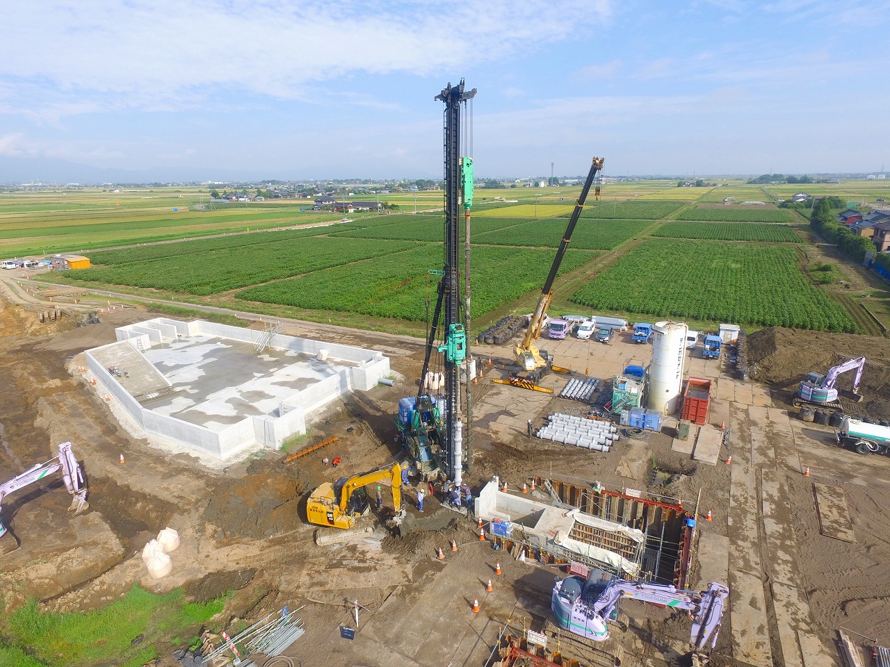 そして3枚目の写真は建屋の基礎杭を打っています。調整池が完成したら建屋工事に着手します!
