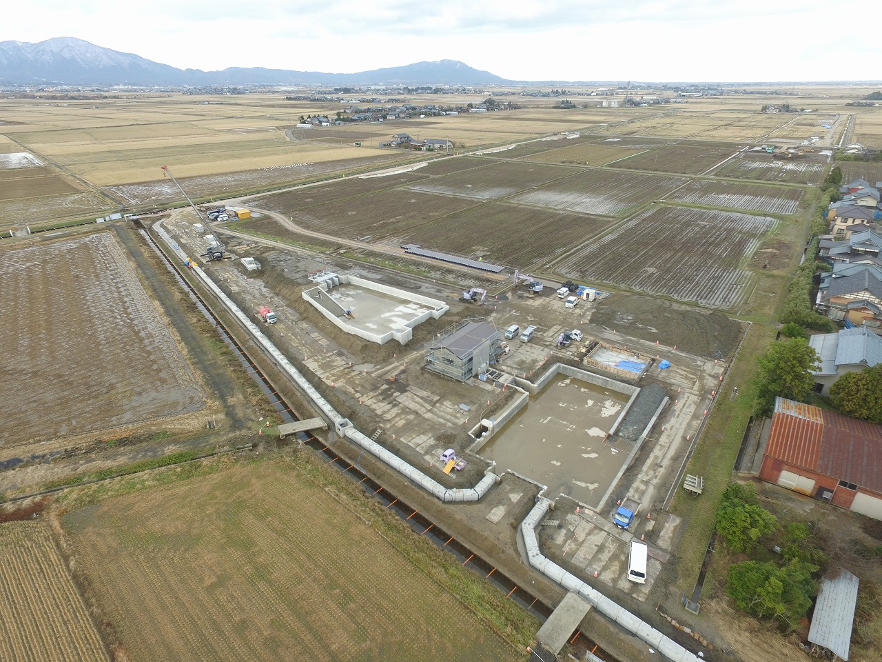 調整池の方の施工が進み、吸水槽の設置をしている様子です。