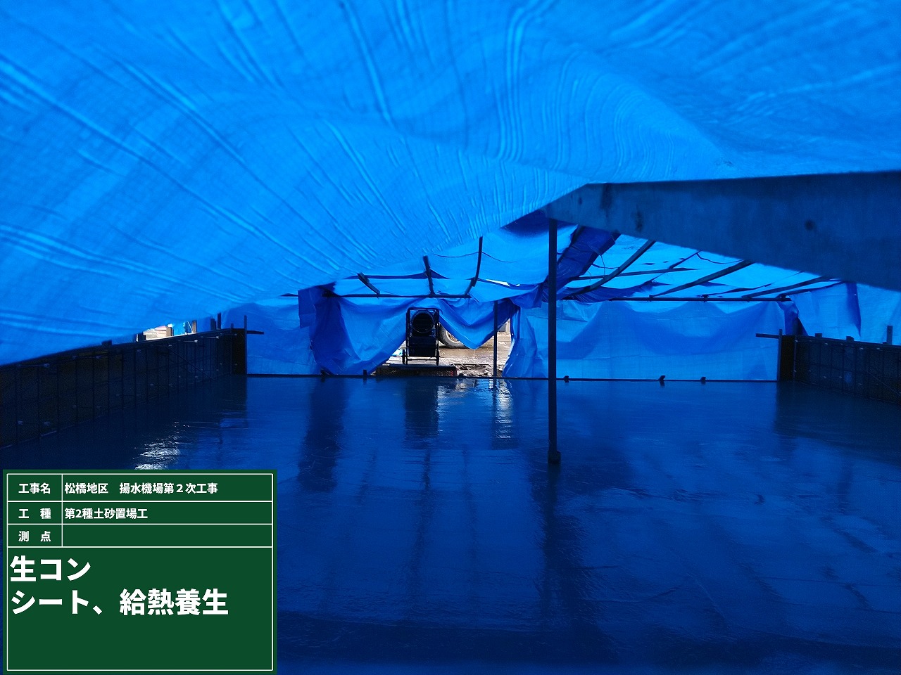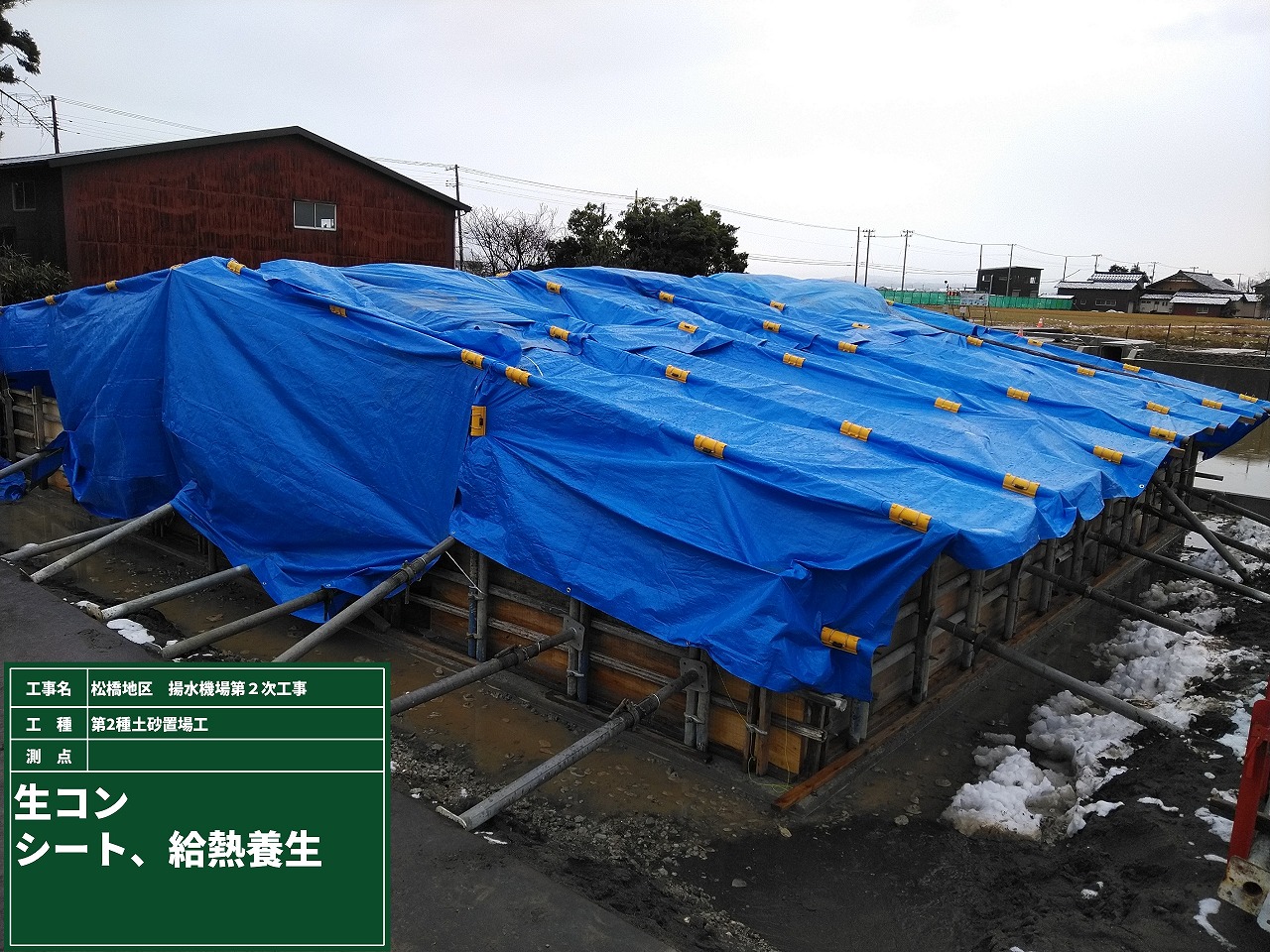 そして1月は外気温が5℃以下を下回るときが多いので給熱養生も同時に行います。